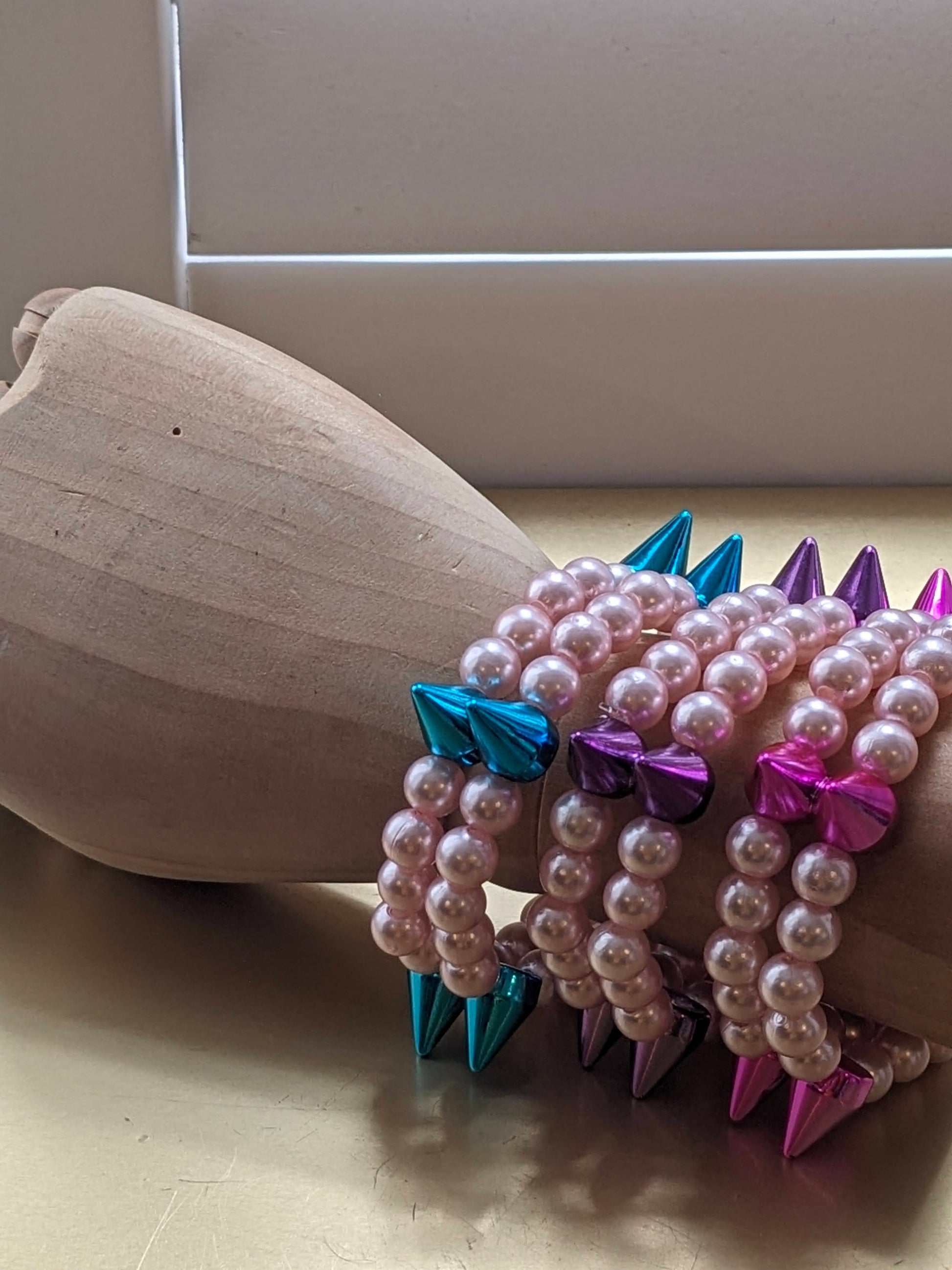 Part of our Pretty and Punk Collection, these gorgeous pearl bracelets are perfect for little ones want to look fancy while reminding everyone -including themselves- not to mistake their cuteness for weakness.